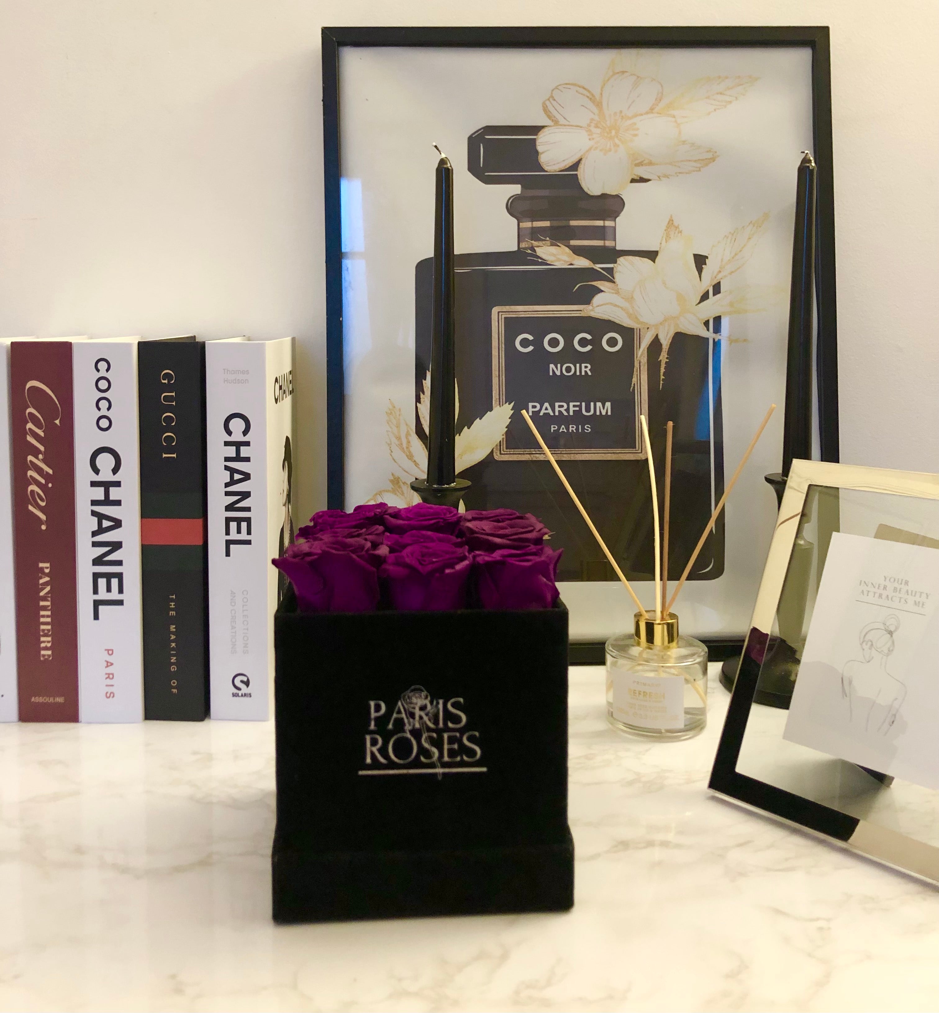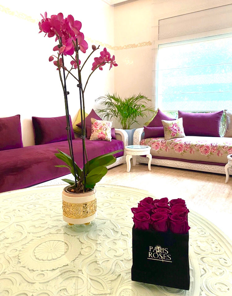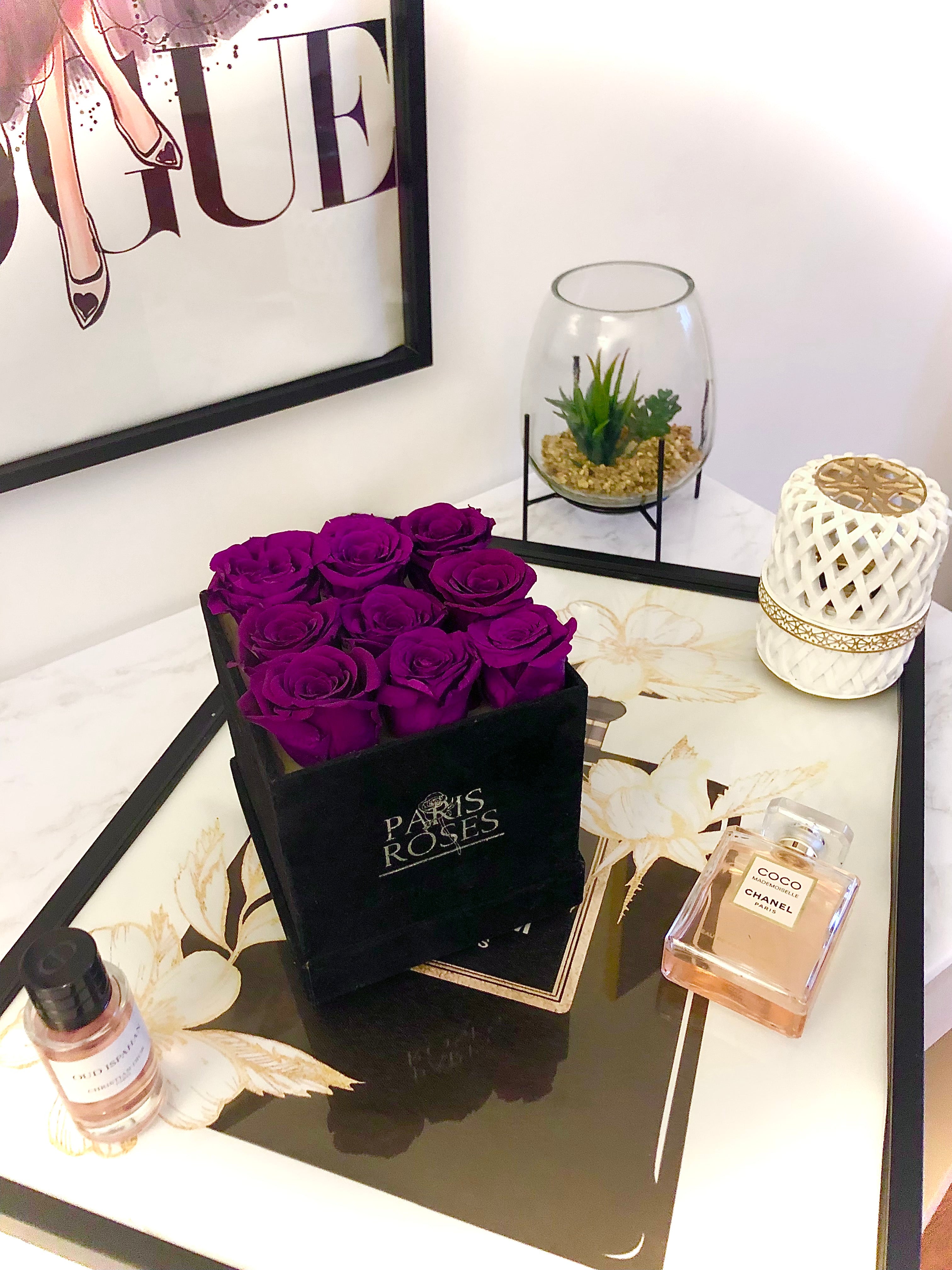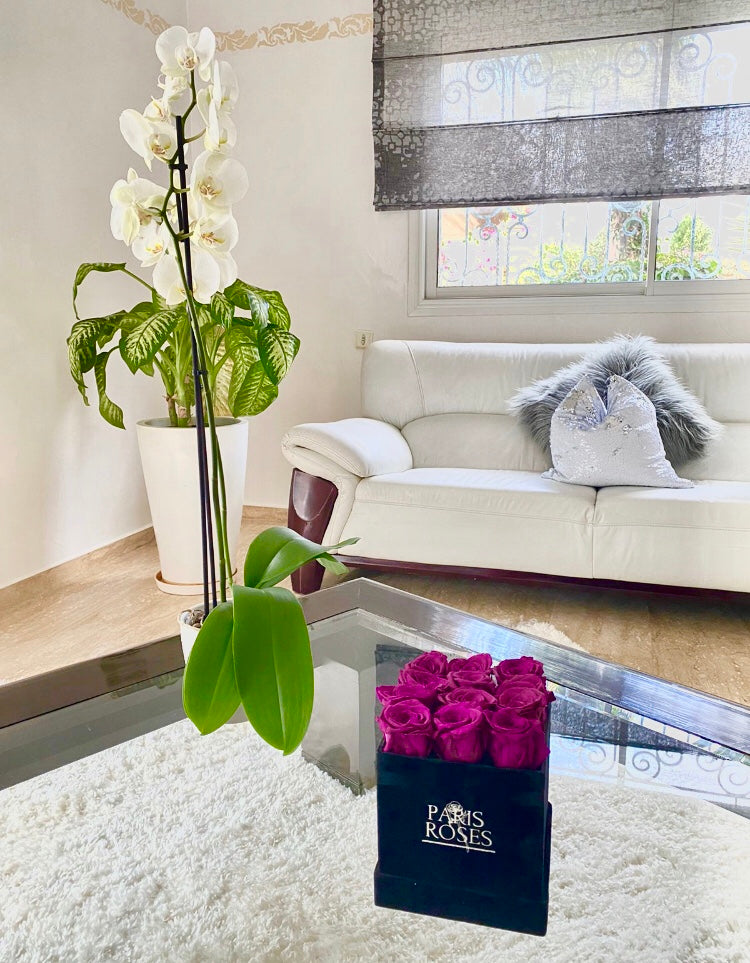 Flowerbox - Box of eternal purple roses - Between 9 and 11 roses is backordered and will ship as soon as it is back in stock.